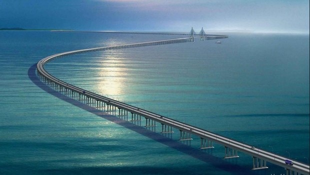 Çin’in Jiangzhou körfezine inşa edilen köprü kompleksinin ana bölümü Quingdao ve Houngdao şehirlerini birbirlerine bağlamakta olup bağlantılarıyla beraber uzunluğu 41 km’yi aşmaktadır. Su üzerinde dünyanın en uzunu olan köprü 5.5 milyar sterline mal olup 2008 yılında açılmıştır. 10.000 işçinin çalıştığı köprünün yapım aşamasında 450.000 ton çelik 2.3 milyon metreküp beton kullanılmıştır.