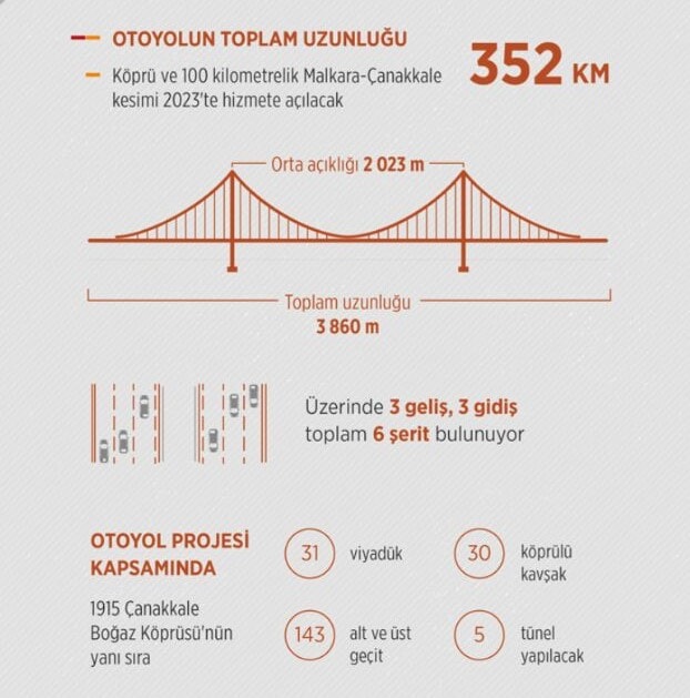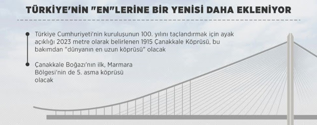 Şimdi ise 3 mart 2016 yılında tekrar başlayan proje ile Türkiye’nin En’lerine bir yenisi daha ekleniyor.Dünya’nın en uzun ayak açıklığı olan Hyogo’daki Akashi boğaz köprüsünü geride bırakarak, cumhuriyetimizin 100. yılını taçlandıracak projenin 2023 yılında tamamlanması öngörülüyor.Proje kapsamında;