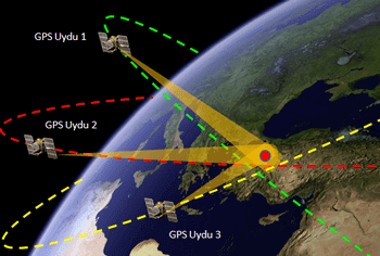 GPS uydularının gönderdiği sinyaller ile GPS alıcısı konumunu tam olarak tespit edebilir. Sadece Enlem ve Boylam bilgisi için 3 uydu yeterlidir. Enlem ve Boylam ile birlikte yükseklikte isteniyorsa 4 adet uydudan sinyal alınması gerekir.